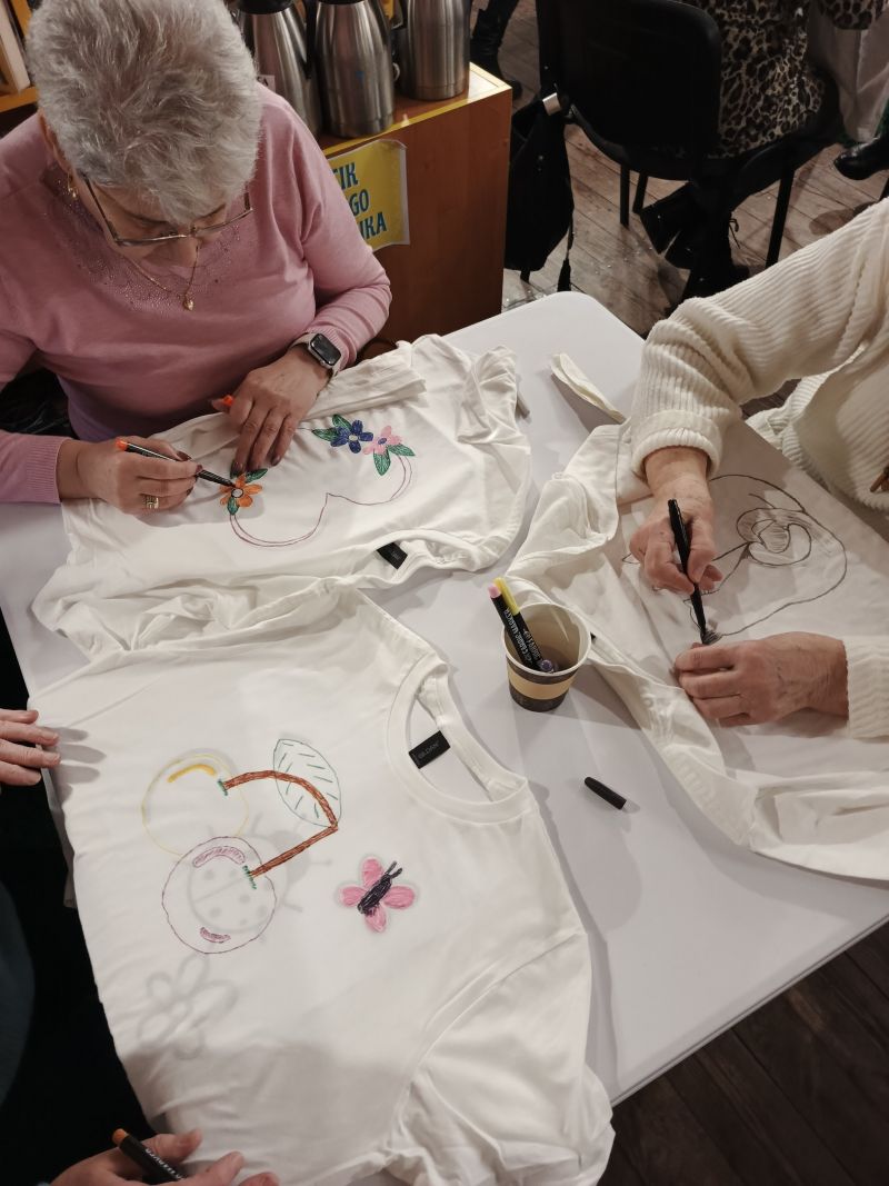 10 lutego odbyły się warsztaty dla osób 60+ podczas których uczestnicy mieli okazję stworzyć własne koszulki.
