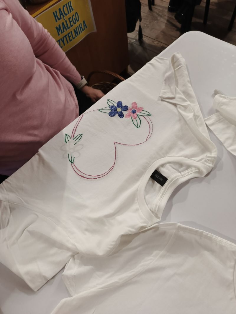 Na koniec każdy wyszedł z warsztatów z gotową, wyjątkową koszulką. Warsztaty sprawiły wszystkim dużo radości i były świetną okazją do rozwijania kreatywności