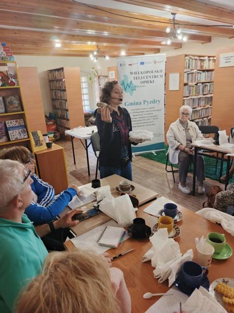 Nie zabrakło również części praktycznej – każdy mógł skomponować własną, unikalną mieszankę ziół i zabrać ją ze sobą do domu. Warsztaty skierowane były dla mieszkańców Gminy i Miasta Pyzdry w wieku 60+, którzy dowiedzieli się jak w prosty sposób zadbać o zdrowie i nauczyć się korzystać z darów natury na co dzień.