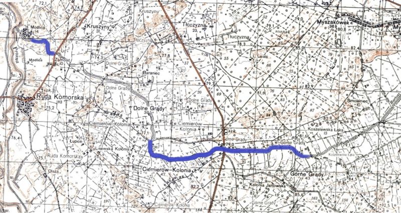· od przepompowni Bartosz do drogi (relacja Ruda Komorska – Pyzdry),